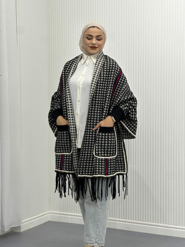 شالات كتف شتوية مع أكمام اسود ابيض مربعات ₪ 100.00
